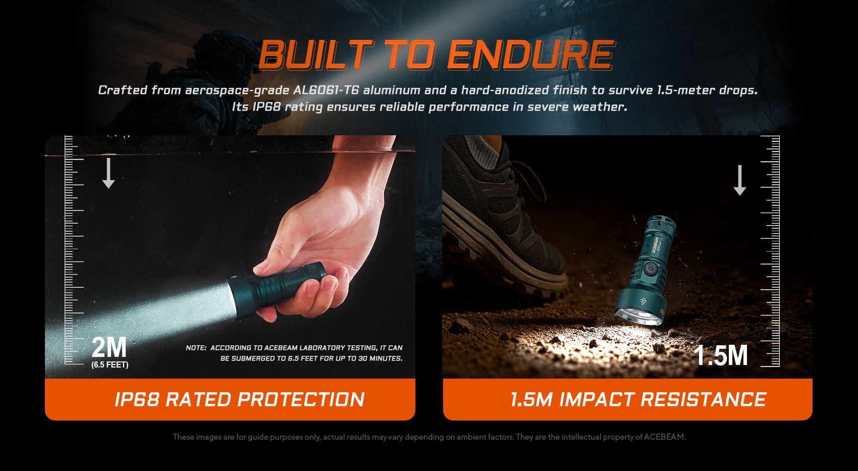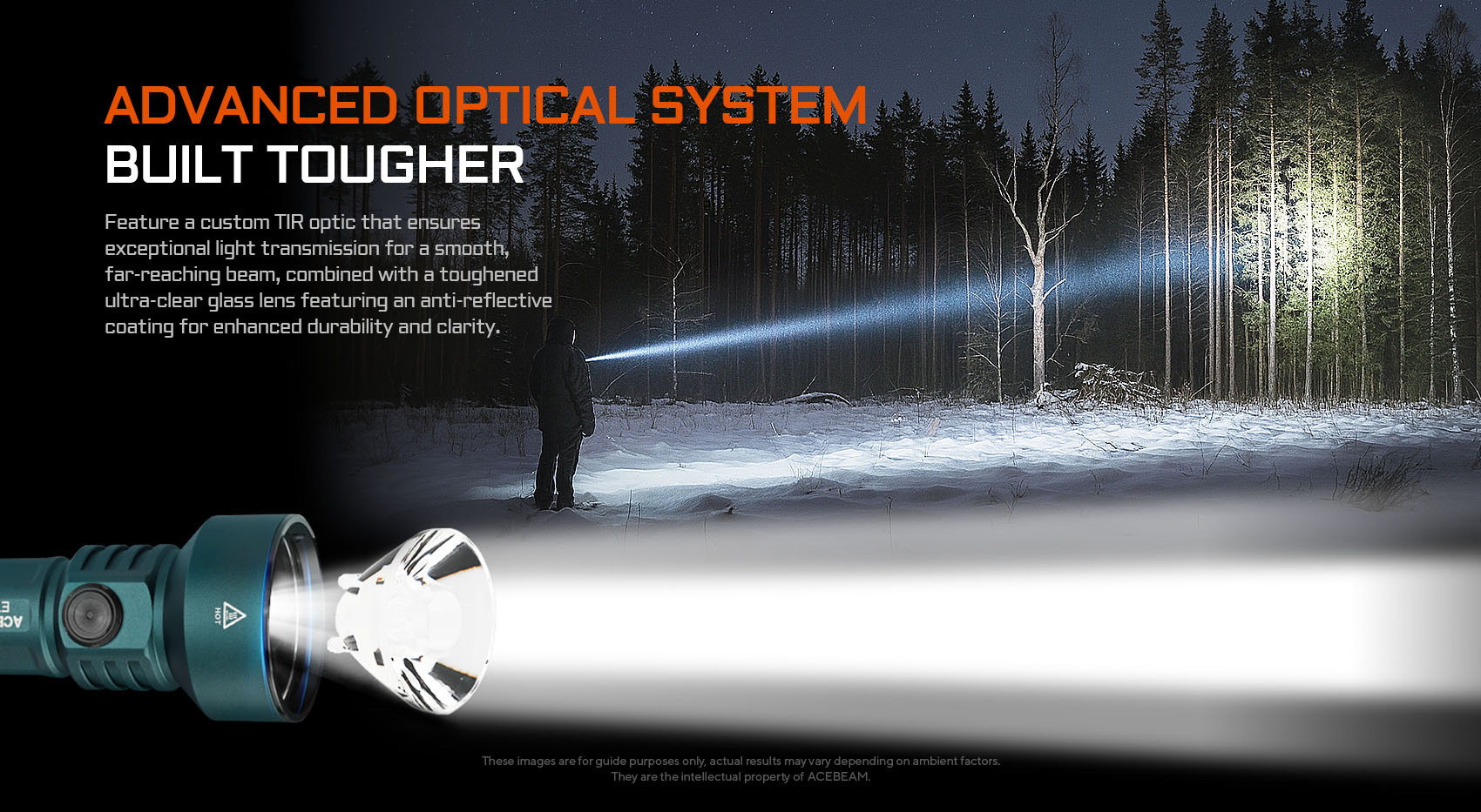 The AceBeam E10 2.0 is a purpose-built compact throw flashlight engineered to deliver exceptional distance performance from a highly portable platform. Producing up to 1200 lumens and reaching an impressive 715 metres, this small-form torch is designed for users who need concentrated long-range illumination without carrying a full-sized light.