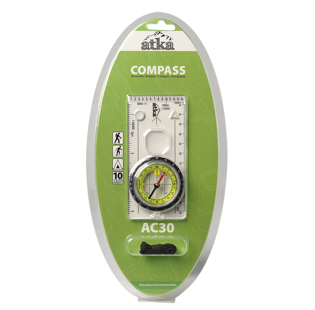 The Atka AC30 Baseline Compass Lightweight and accurate orienteering compass with a clear baseplate and fast-settling needle, designed for reliable outdoor navigation.