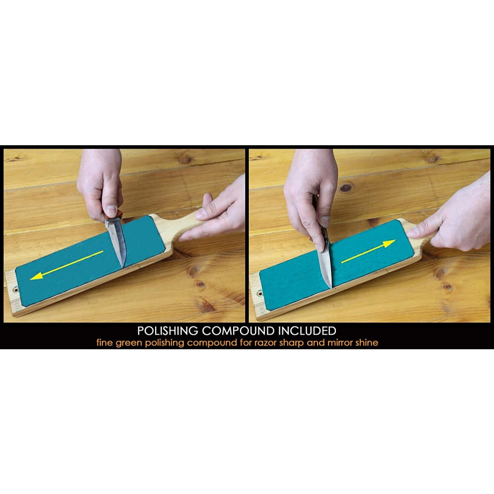 LS1P1 Dual-Sided Leather Paddle Strop with Polishing Compound: