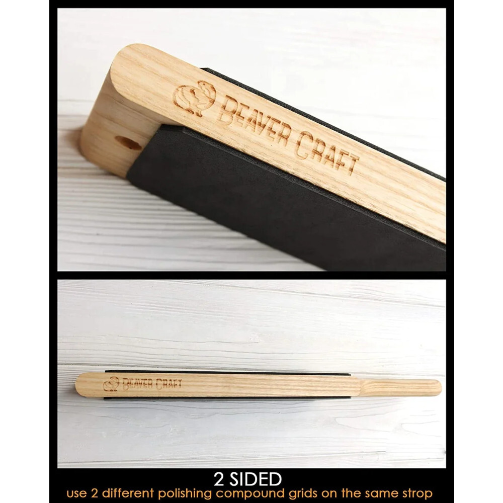 BeaverCraft Dual-Sided Leather Paddle Strop with Polishing Compound – LS1P1