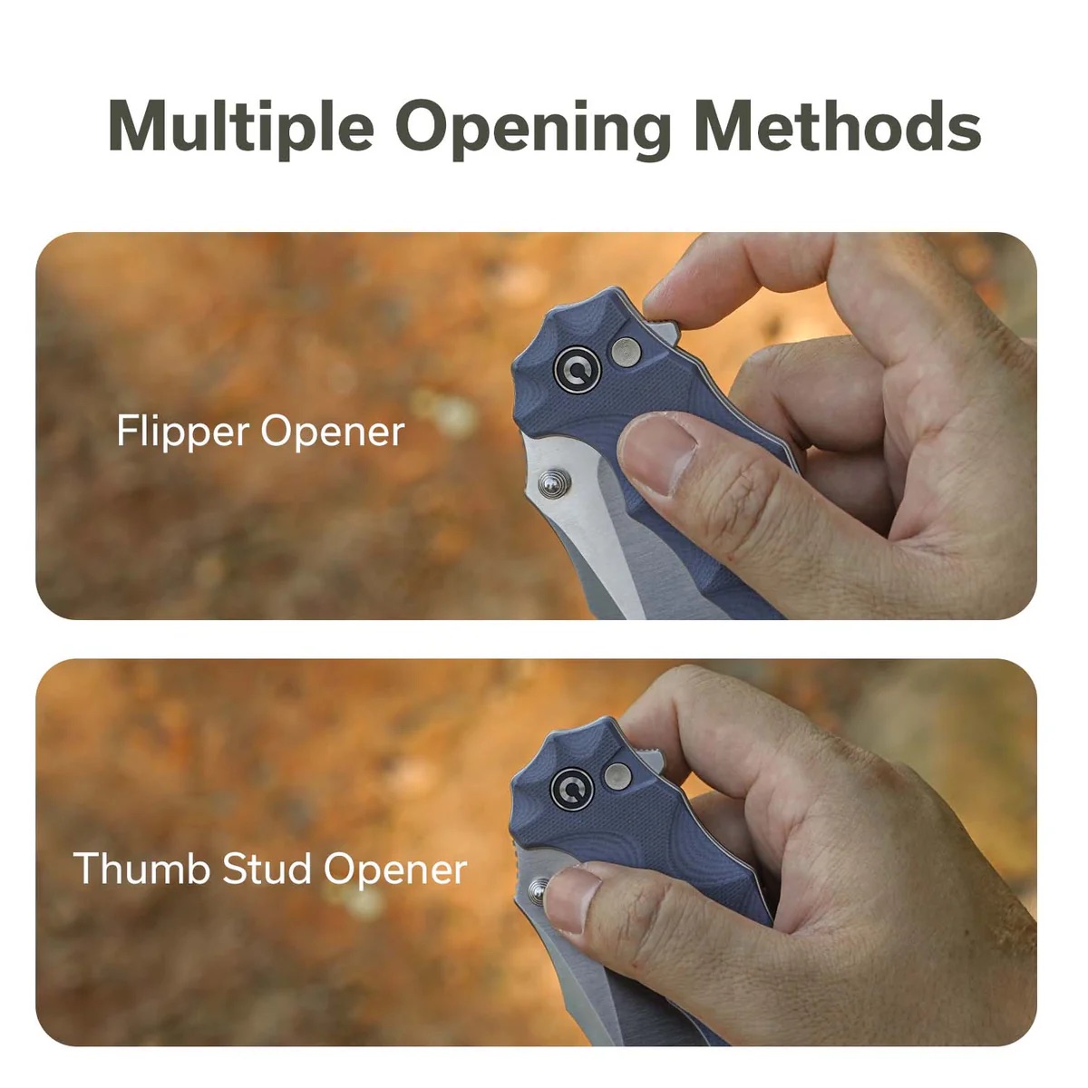 The CIVIVI Natterjack C24028-2 is a reliable everyday carry folding knife designed to deliver smooth operation, practical performance, and durable construction. It features a 3.19″ drop point blade crafted from Sandvik 14C28N stainless steel, a premium blade steel valued for its excellent corrosion resistance, edge retention, and toughness. The blade is finished with a black stonewash coating that enhances durability while helping conceal wear from everyday use. Deployment is fast and intuitive thanks to both the flipper tab and thumb studs, giving users multiple one-handed opening options. The button lock mechanism provides secure lockup and allows effortless blade closing, while the textured G10 handle offers a comfortable grip and lightweight strength for dependable daily carry.