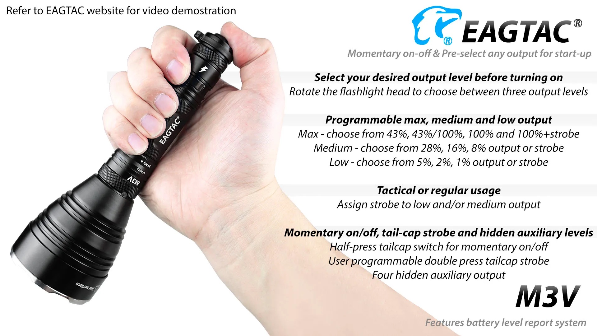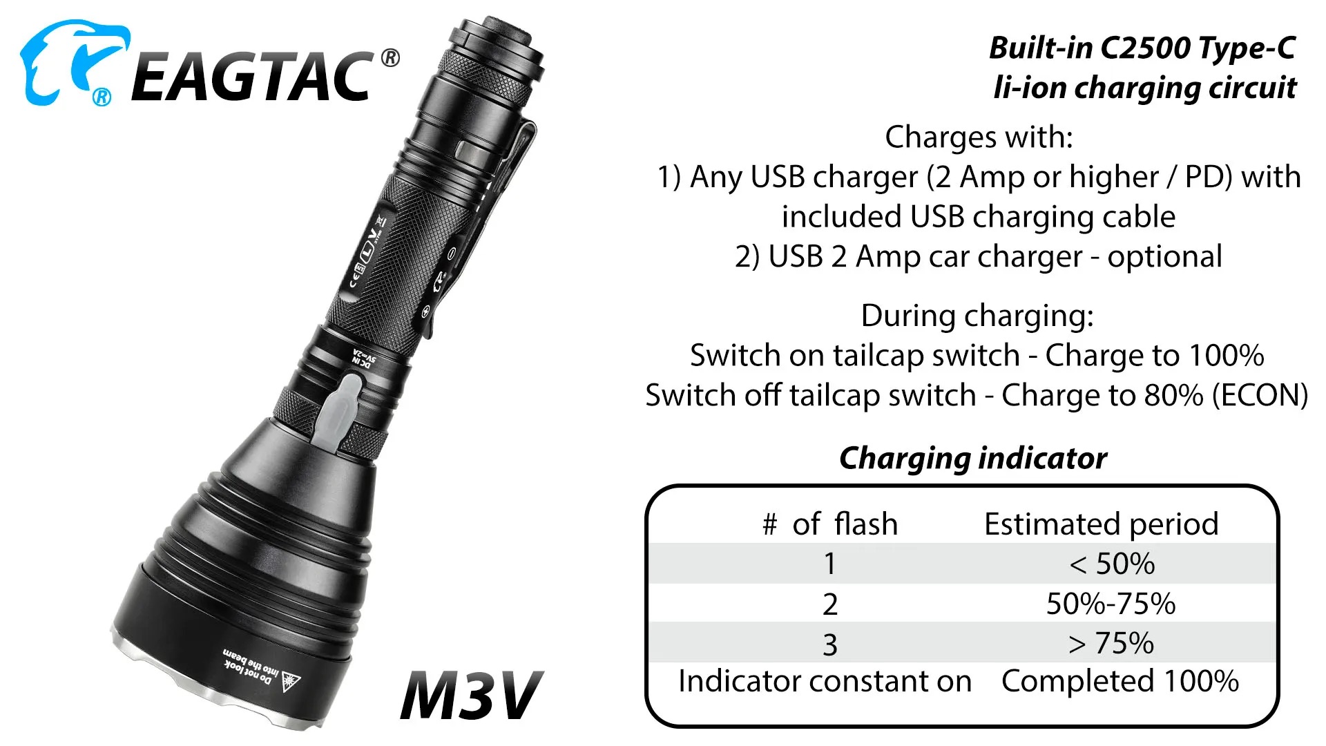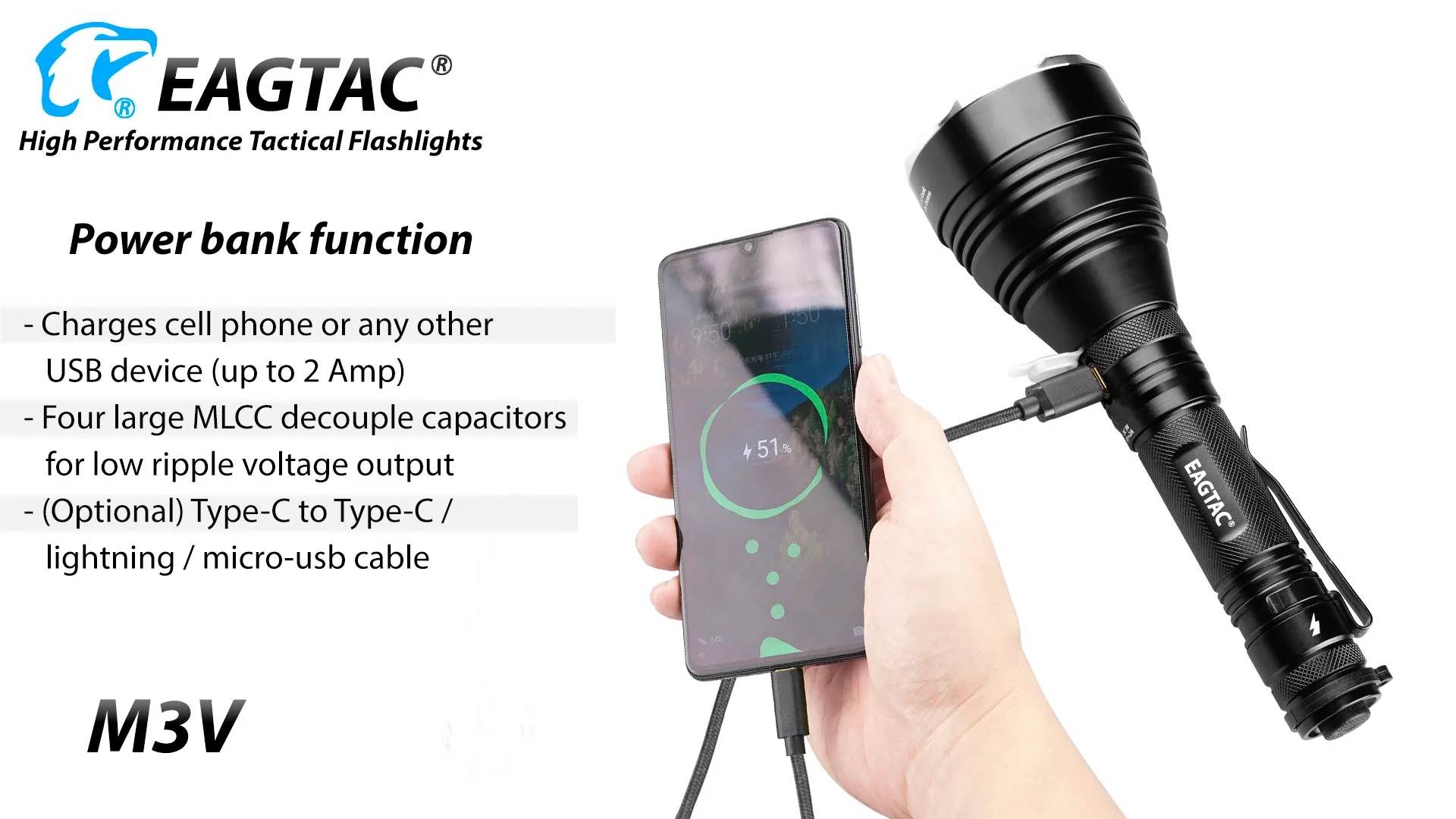 The Eagtac M3V Rechargeable Hunting Torch Kit is built for serious hunters and outdoor professionals who require extreme throw, reliability, and precision lighting. Producing a powerful 3000-lumen output with an impressive beam distance of up to 877 metres, the M3V is ideal for long-range spotting, scanning open terrain, and navigating dense bush in low-light conditions. Crafted from aircraft-grade aluminium with a tough hard-anodised finish, this torch delivers exceptional durability while remaining compact and well balanced in the hand. Advanced thermal regulation and intelligent power management ensure consistent performance during extended use, making it a dependable tool for demanding night-time environments.