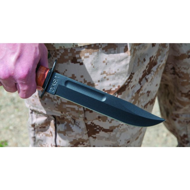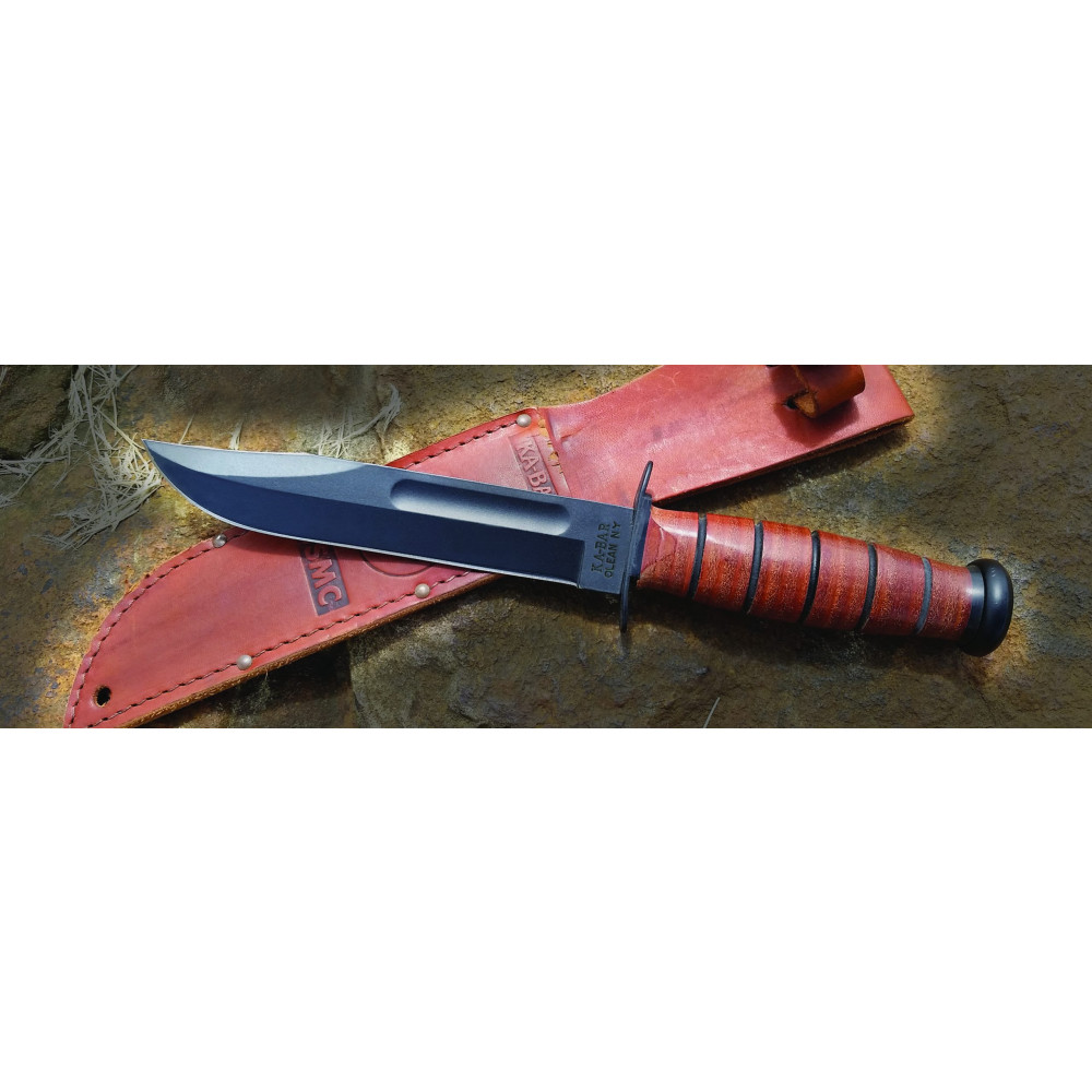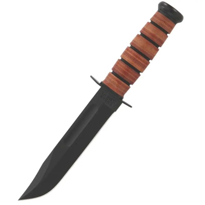 In response to a request for a modern fighting knife for the Marines, USMC Colonel John M. Davis and Major Howard E. America worked with what would become KA-Bar Knives to develop the knife we know today. The 7-inch carbon steel blade features a black, non-reflective epoxy coating and an edge that comes razor sharp right out of the box. Its stacked leather handle was designed to offer a better and more comfortable grip while the steel crossguard prevents the knife from slipping out of your hand in tough weather conditions. All of these unique features, coupled with the included leather sheath, add up to create a knife that is perfectly stealthy and suitable for jobs that require the utmost precision and efficiency.