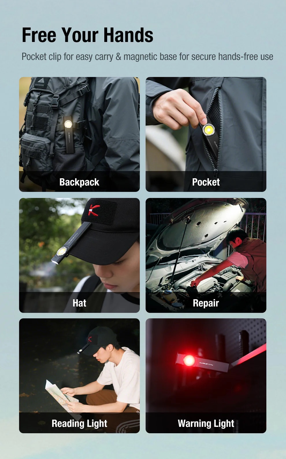 • Magnetic Base: Allows hands-free use on metal surfaces
