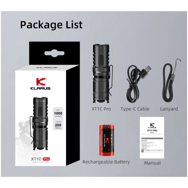 - 1 x Klarus 16340 Li-ion USB-C rechargeable 700mAh battery