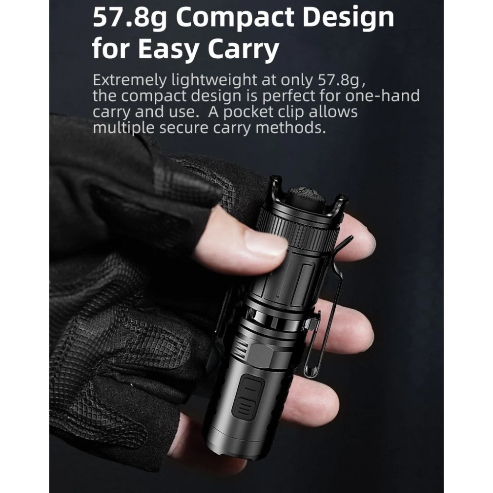 - Micro-USB Rechargeable: Powered by a 16340 battery (included) with USB-C charging capability for convenience.