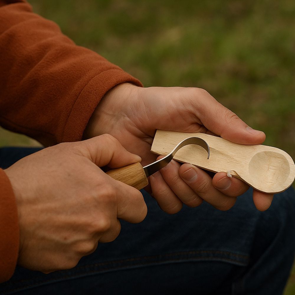 The hook knife (spoon carving tool) is for carving spoons, bowls, and round, deep holes in wood for other crafts. It is essential for cutting holes in wood surfaces. Due to the curved (semicircular) shape, such a knife is very effective for various woodworking tasks, namely figured woodcarving. The user can refine the form of a cup, spoon, bowl, and other products with a similar design. Such a tool will become indispensable not only for carving spoons from wood but also for performing various other techniques in the art of wood carving related to cutting grooves in the wood. It suits right-handed users.