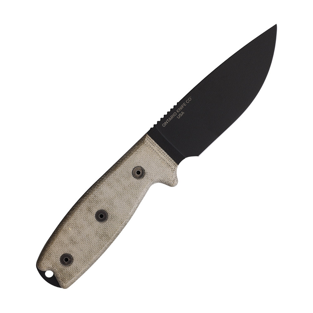 The Ontario Knife Co. RAT-3 is a compact yet highly capable fixed-blade knife built for serious outdoor performance. Featuring a rugged 3.75″ 1095 carbon steel blade with a durable black powder-coated finish, it delivers excellent edge retention, toughness, and corrosion resistance. Its ergonomic Green Micarta handle offers a secure, comfortable grip in any environment, while the full-tang construction ensures reliable strength for demanding tasks. Whether used for camping, survival, bushcraft, or everyday fieldwork, the RAT-3 is designed to provide dependable performance and long-lasting durability.