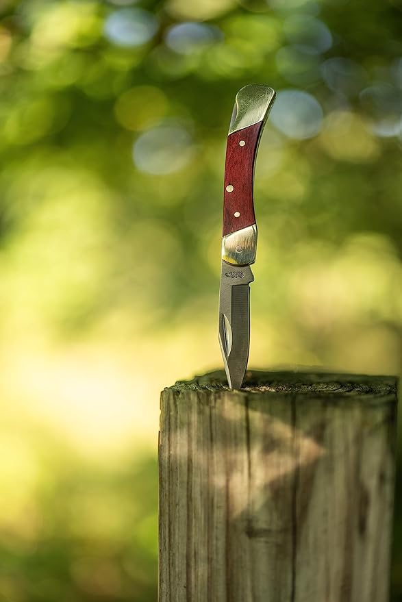 The Schrade Uncle Henry Brown Bear is a classic lock-back folding knife that combines traditional style with practical functionality. Its 2.2-inch clip-point blade, crafted from high-carbon stainless steel, provides reliable cutting performance and excellent corrosion resistance for everyday tasks. The handle is made from rosewood scales accented with nickel silver bolsters and brass pins, offering both a comfortable grip and a timeless aesthetic. Weighing just 45 g, this compact knife is easy to carry yet built to last. Perfect for collectors or as a dependable everyday carry knife, the Brown Bear blends quality, heritage, and functionality.