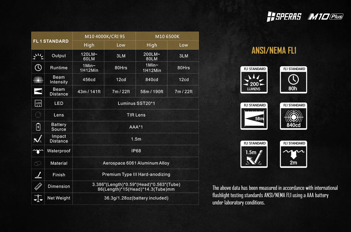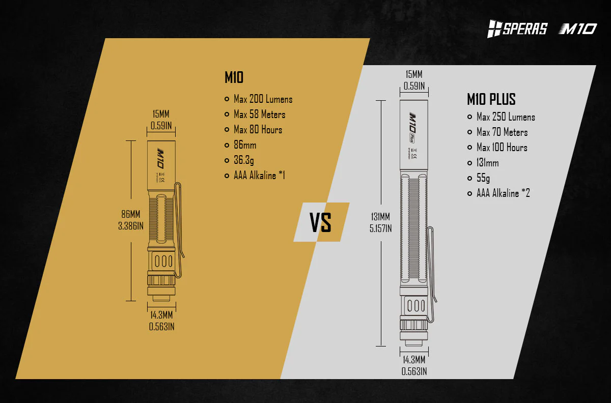 SPERAS M10 Small EDC Flashlight – 200 Lumens, 58 Metres