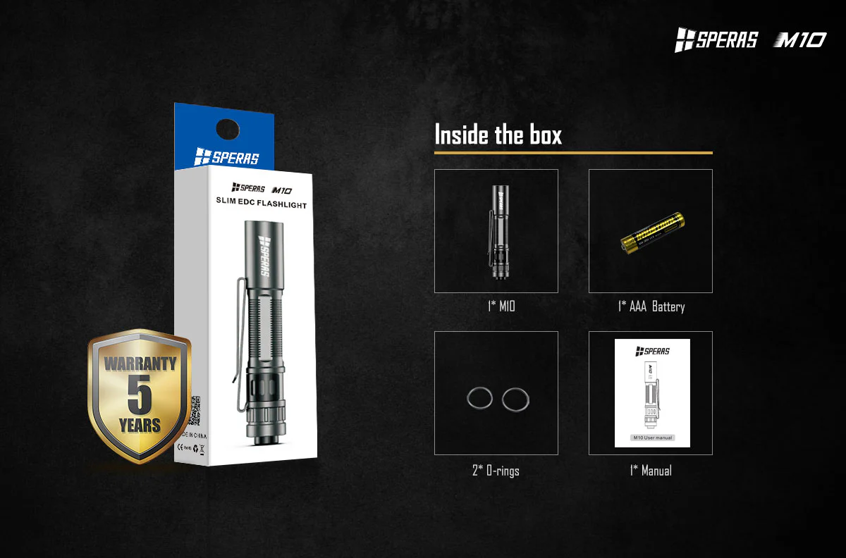 The Speras M10 flashlight is a compact, versatile torch that combines everyday practicality with dependable performance.